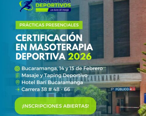 TRANSFORMANDO PASIONES EN PROFESIONESSomos referentes en la formación profesional de masoterapeutas deportivos en Colombia. Con más de 880 especialistas certificados, nuestra misión es capacitar a los líderes del futuro en el ámbito deportivo y de la salud.